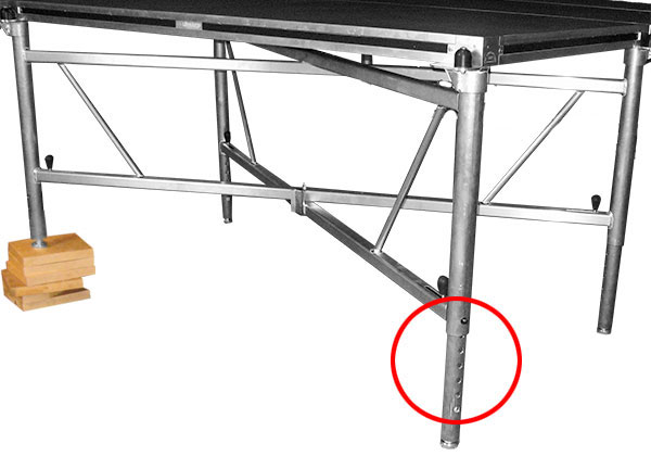 UltraStage X-Frames can also be inverted so the telescopic inserts can be telescoped DOWN to allow for traversing stairs or other steep grades without having to resort to wood blocking or shimming.